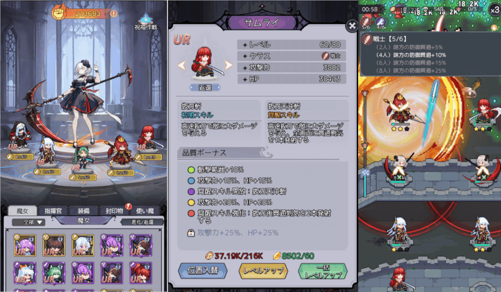 初心者のうちは「強い魔女を並べる」だけでも進められますが、中盤以降は“組み合わせ”が鍵になります。魔女のスキル・装備・祝福・属性・クラスなどを掛け合わせて、相乗効果を狙いましょう。