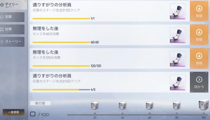 デイリーミッションと分析員経験値