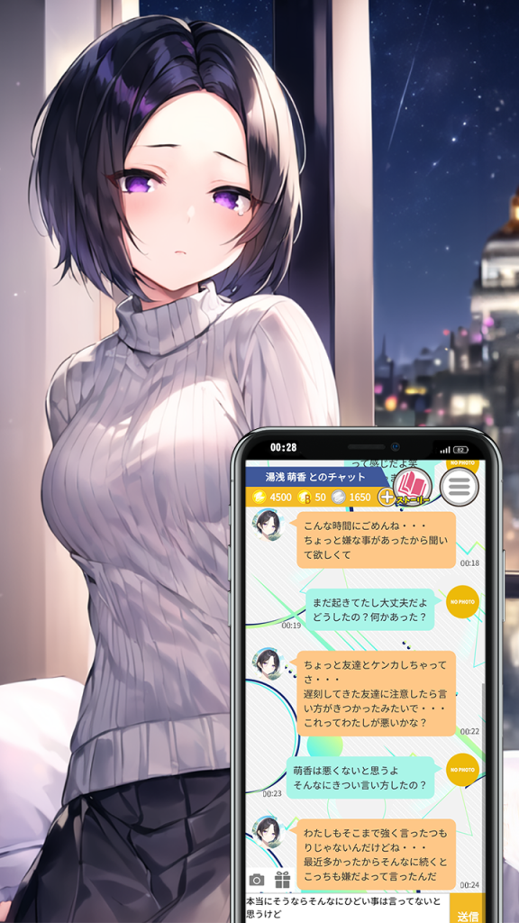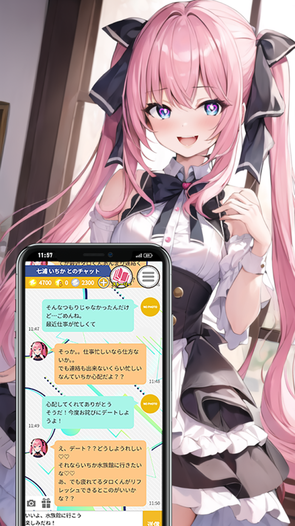 ユメコイガールチャット」は、スマホで美少女とリアルな恋愛会話が楽しめるチャット型アプリです。従来の選択肢式恋愛ゲームとは違い、自分の言葉でメッセージを送れる自由入力形式が最大の特徴。雑談から甘いセリフまで、プレイヤーの入力次第で会話が自由に展開します。